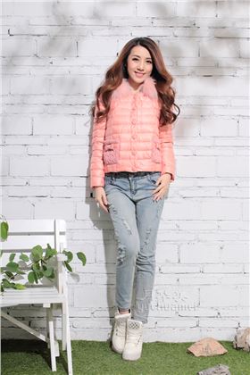 经典短款粉色女装羽绒服,时尚的口袋设计,修身短款式,秀出小蛮腰显瘦,秀出完美的身材比列,告别冬天的臃肿。